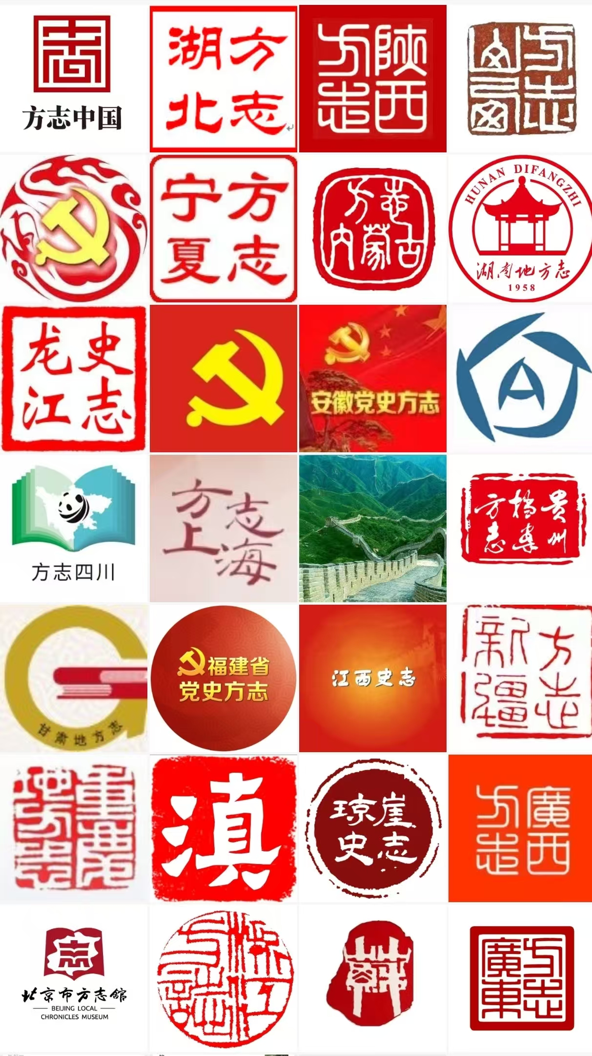 | 如果在微信里搜索“方志”,会发现各省几乎都有自己的官方公众号。但这些账号给人的第一印象其实很不一样:有的头像像一枚红色印章,有的更像文化机构logo。出于好奇,笔者把能搜索到的省级方志公众号的头像整理了一遍,时间截止至2026年3月10日。